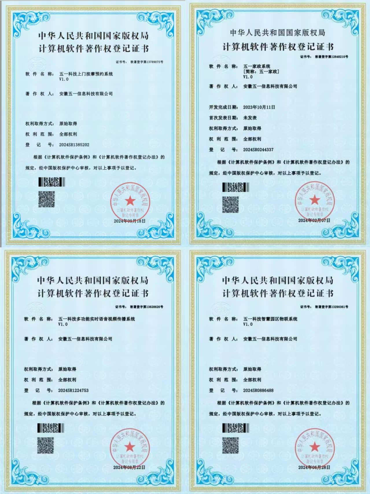 2023年5月24日,获得了装修验房系统【简称:五一验房】,是其在系统开发领域的又一拓展。
