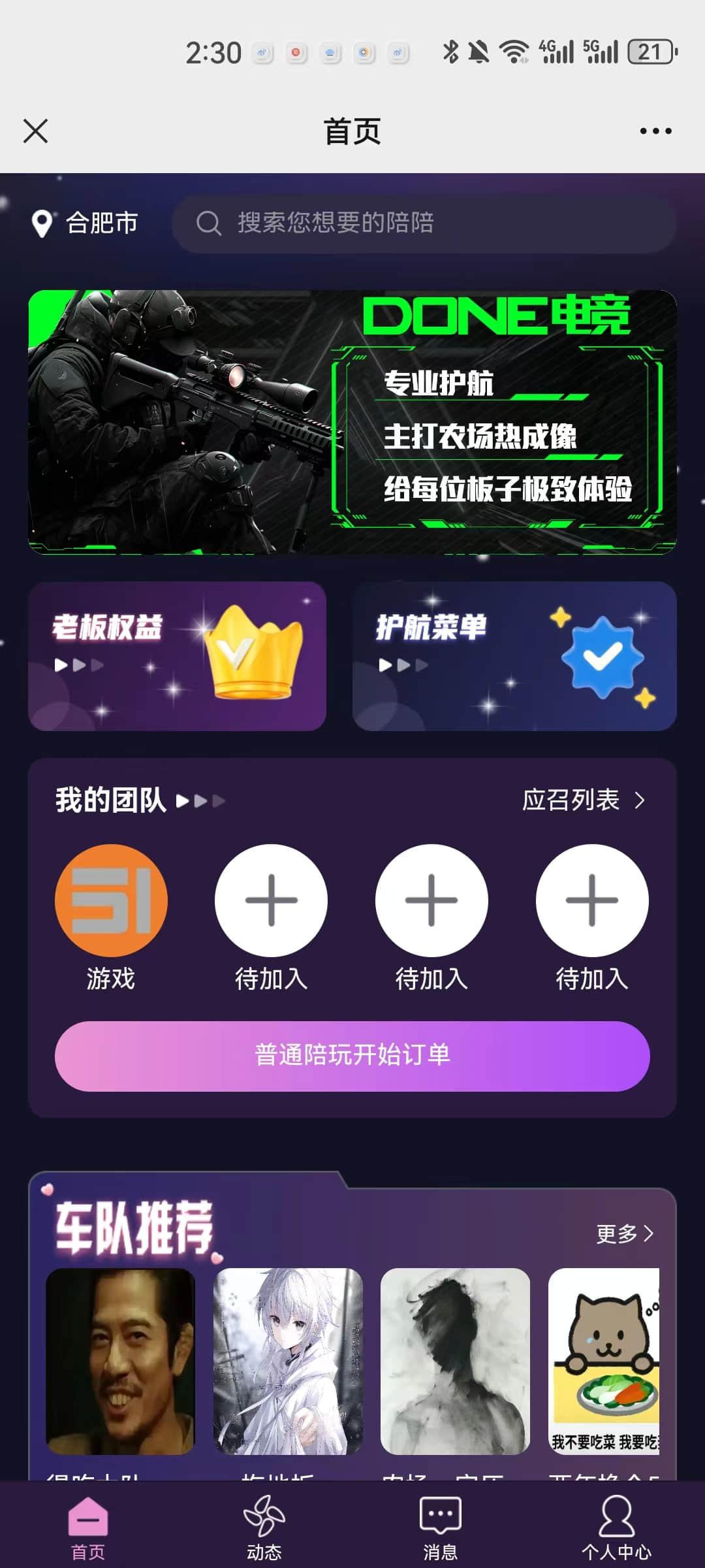 点击护航菜单板块即出现该页面 ,可以选择普通陪玩等选项