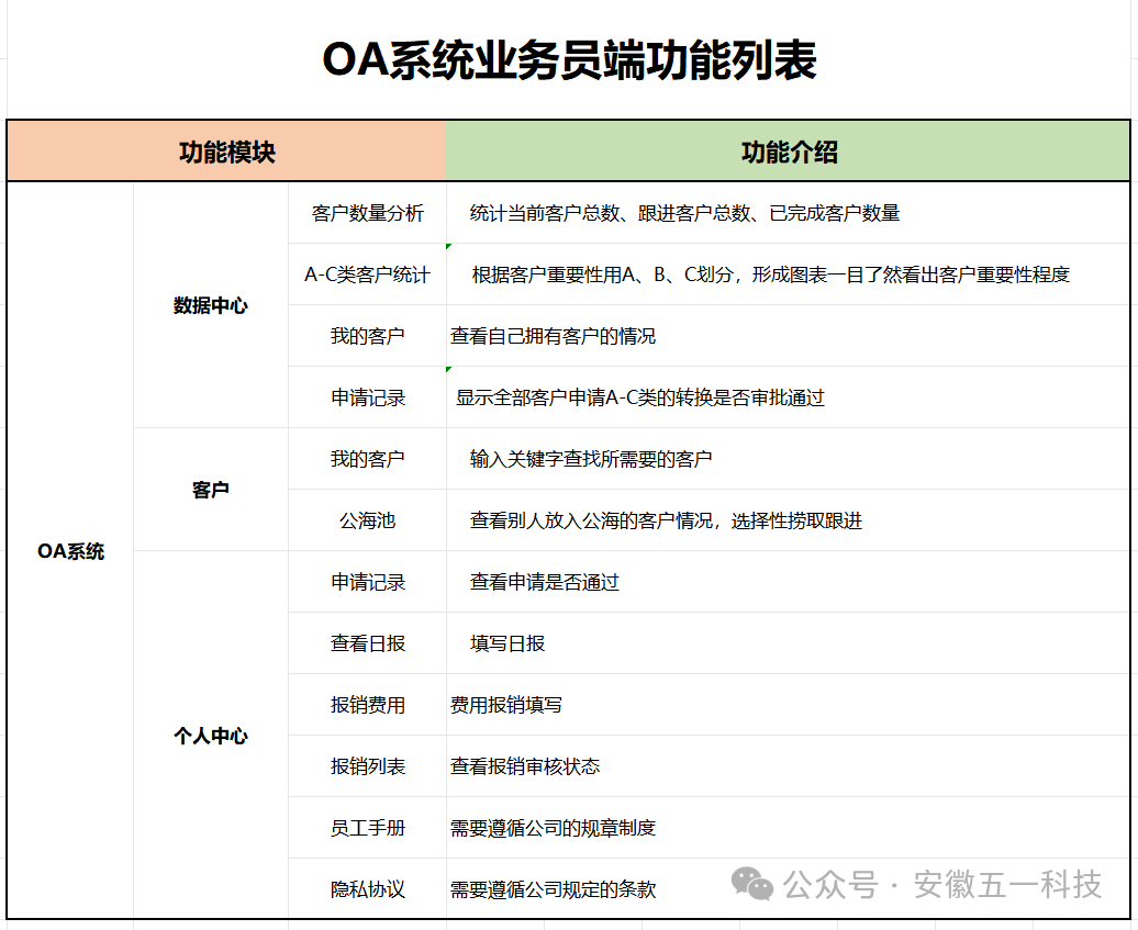 【OA系统业务员端口主要功能】