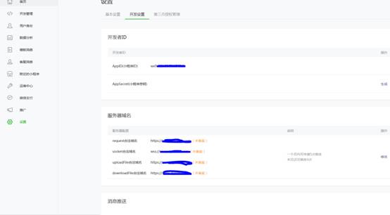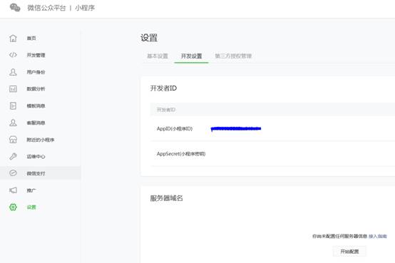2、在“设置-开发设置”里,配置好服务器域名